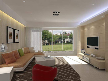 Description:Modern light yellow warm living room