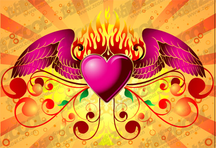 Description:Flame wings of love vector material